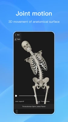 Joint motion: Offers animation principles of core joint motions, showcasing each joint's actions in coronal, sagittal, and axial planes.