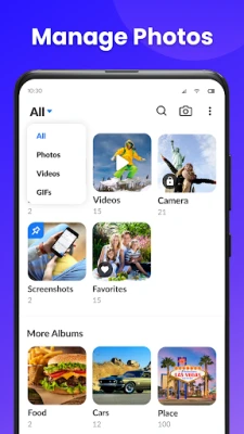 Gallery keeps your private photos safe with its built-in vault. Lock photos and videos using a password or fingerprint. Hide them from your gallery so only you can access them. Gallery is a safe app that protects your personal media without internet access. Share your phone without worrying about privacy.