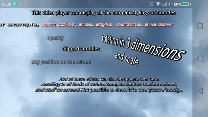 - Support for complex styling in Advanced SubStation Alpha subtitles, and up to 2 subtitle tracks